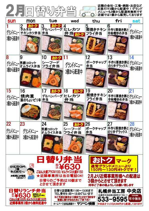 中央店 日替りランチ弁当